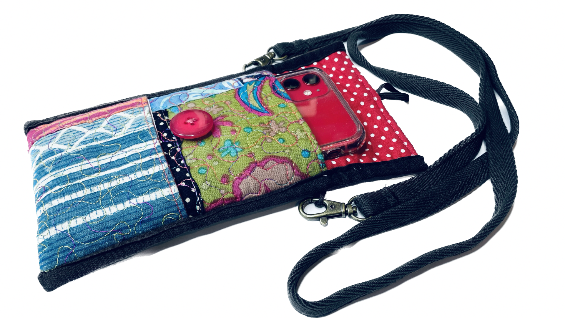 Learn how to make a neat little bag to safely carry your mobile phone or a small sketchbook, when you haven't got pockets or don't want to use a larger handbag. Detach the strap, and it's a beautiful, protective case if you do! I'll show you how to make it exactly the right size.